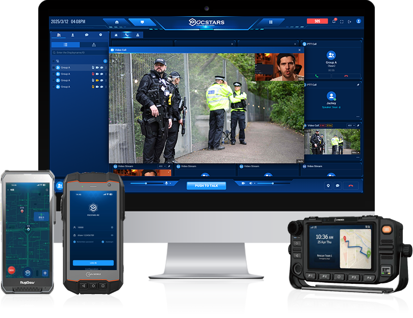 POCSTARS-MCX is a 3GPP-compliant mission-critical communications solution built on LTE/5G networks. It delivers ultra-reliable, low-latency voice, video, and data services via high-priority QCI-level channels, while supporting seamless evolution toward NGN architecture. The system integrates MCPTT, MCVideo, MCData, and a unified dispatch console—enabling real-time communication, centralized command, and rapid coordination in high-stakes operational environments. By breaking down device and network silos, it ensures secure, unified collaboration across teams, terminals, and regions. Engineered to meet the highest standards of reliability, security, and interoperability, POCSTARS MCX supports large-scale, multi-agency deployments and seamless cross-network integration. It is ideally suited for public safety, emergency response, transportation, energy, and other critical sectors that demand always-on communication.